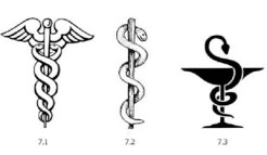 Trei simboluri, reprezentând în aparenţă acelaşi lucru: Caduceul (figura 7.1) – simbolul zeului grec Hermes (Mercur la romani), ocrotitor al comerţului şi al hoţilor. Caduceul este întruchipat de 2 şerpi încolăciţi în jurul unui toiag ce prezintă în partea superioară 2 aripi.
