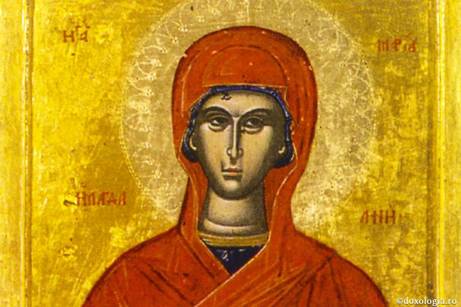 Sfânta Mironosiță Maria Magdalena a căutat cu râvnă și durere pe dumnezeiescul Învățător, cerând cu lacrimi izbăvirea ei de demoni, și a fost vindecată. Nu a aflat numai tămăduirea ei, ci și adevăratul sens al vieții care este comuniunea cu Dumnezeu. Domnul, care cunoștea inima ei, a făcut‐o uceniță a Lui și a învrednicit‐o să se arate întocmai cu Apostolii.